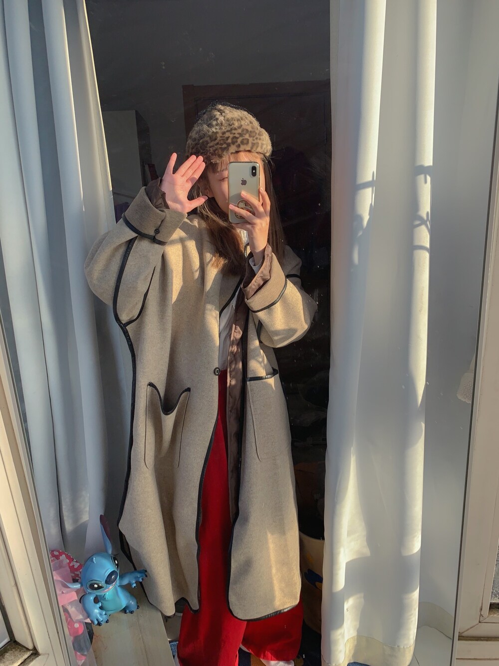 🎈🧸⓪Ⓥ⓪のノーカラーコート「【マルチウェイ】サテンライナー付きパイピングガウンコート / キルティングコート/ノーカラーコート」を使ったコーディネート