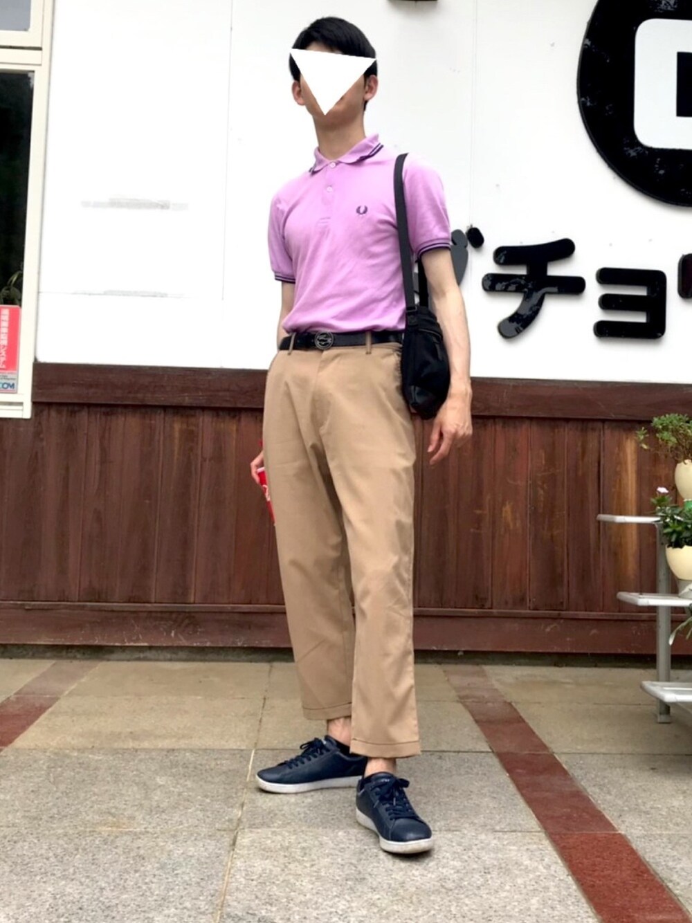 こんにちは珍さんです! 今日はピンク?パープル?のフレッドペリー のポロシャツをタックインしました! 意外とベージュパンツとの相性は悪くないかも、、、 サコッシュも持ち運び楽で可愛くて好きです! いいね、お気に入り、フォローよろしくお願いします🤲🥺