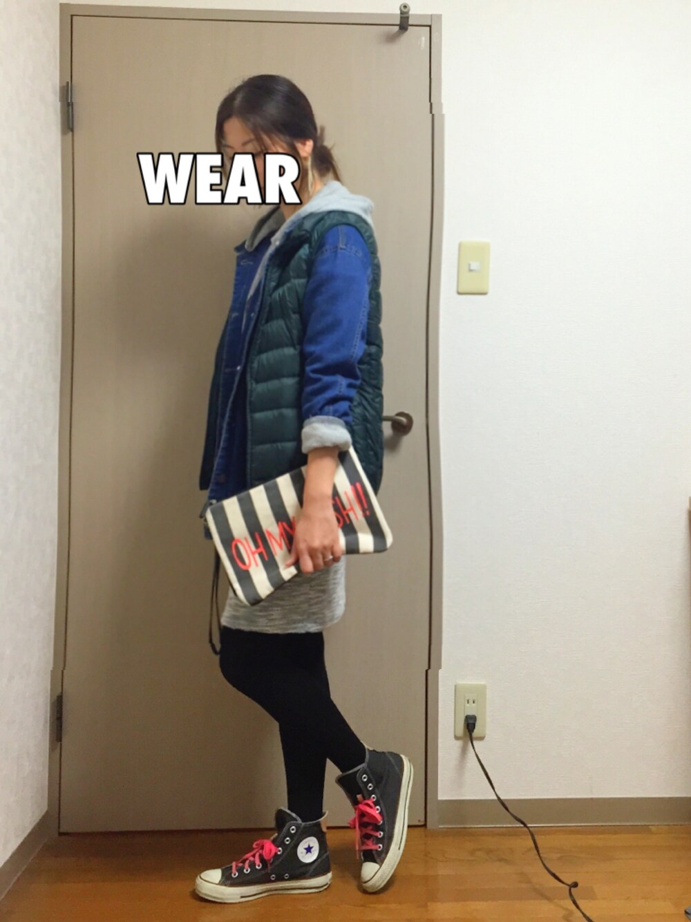 ピロちゃんのコーデを真似っこ♡ 寒くて諦めてたGジャンにダウンベストをON! …申し訳ありません!! こんな安っぽいコーデで「真似っこ♡」とかほざいてほんとすいません!!((유∀유|||)) 全身全力で土下座します。