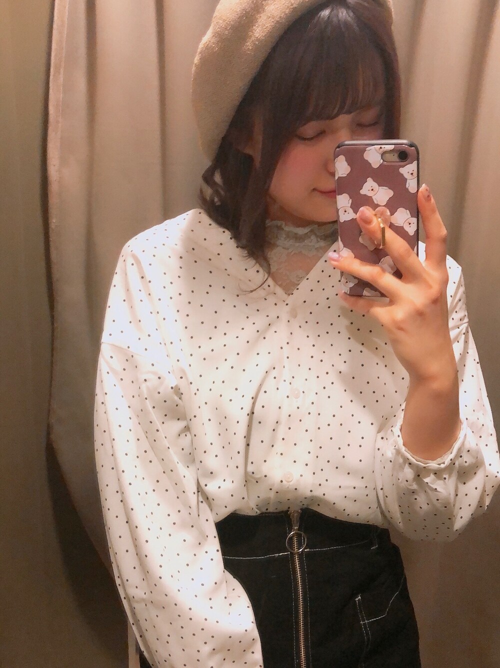 形が綺麗なドットブラウス❤︎ 袖は主張しすぎないボリュームで アウターにも響かず着れます! スカートは足首周りの 見せたいところだけ見える タイトスカートです!