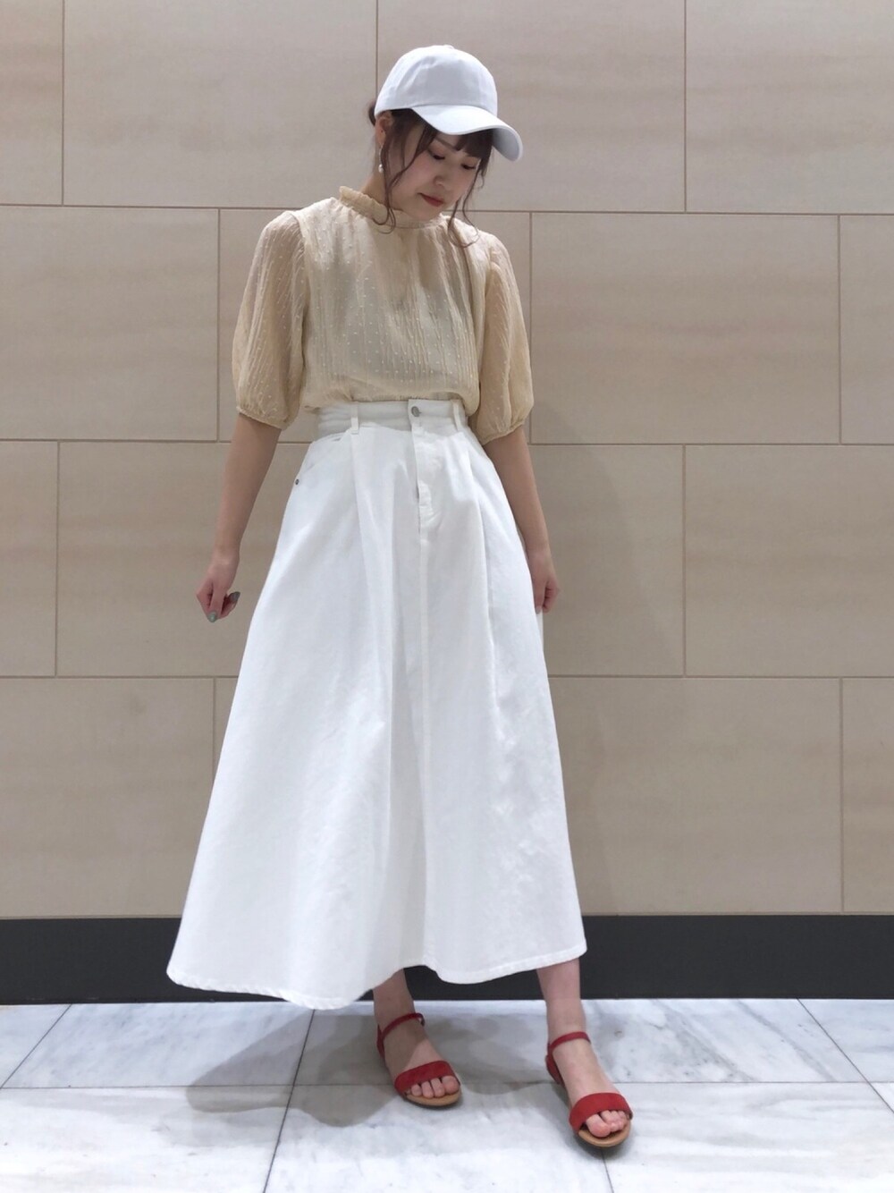 可愛いブラウスには キャップやデニムなどの カジュアルアイテムを合わせたくなる💭 ブラウスは袖以外の部分に 裏地が付いているので 抵抗なく着て頂けると思います!
