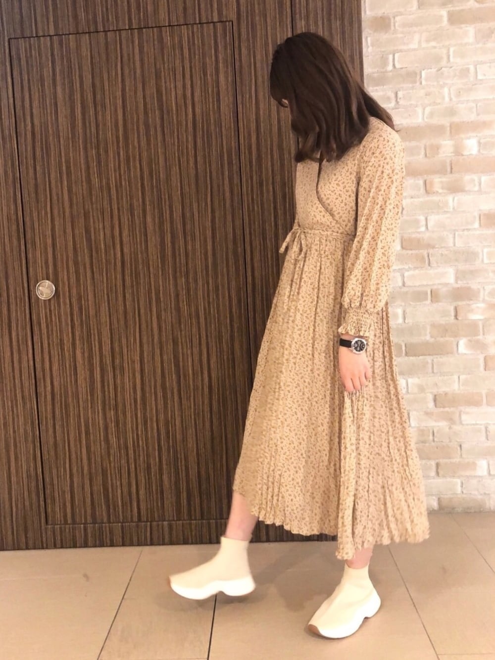 広瀬すずさんデザインのワンピ👗 カシュクールデザインなのに 屈んでも全くはだけなくて感動… スカート部分は ワッシャープリーツなので 動くたびひらひらして可愛いです❤︎