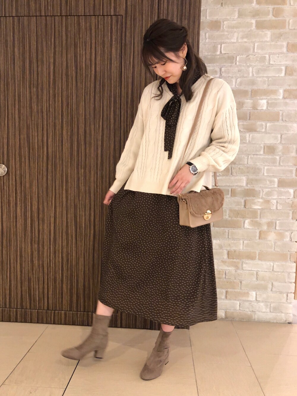薄手のボウタイワンピースには ベストやニットを重ねるのがオススメです! 暖かさも可愛さもバッチリです❤︎ ブーツはヒールがありますが 長時間履いても痛くならないです! ストレッチブーツなので 足首にフィットしてくれて歩きやすさも◎