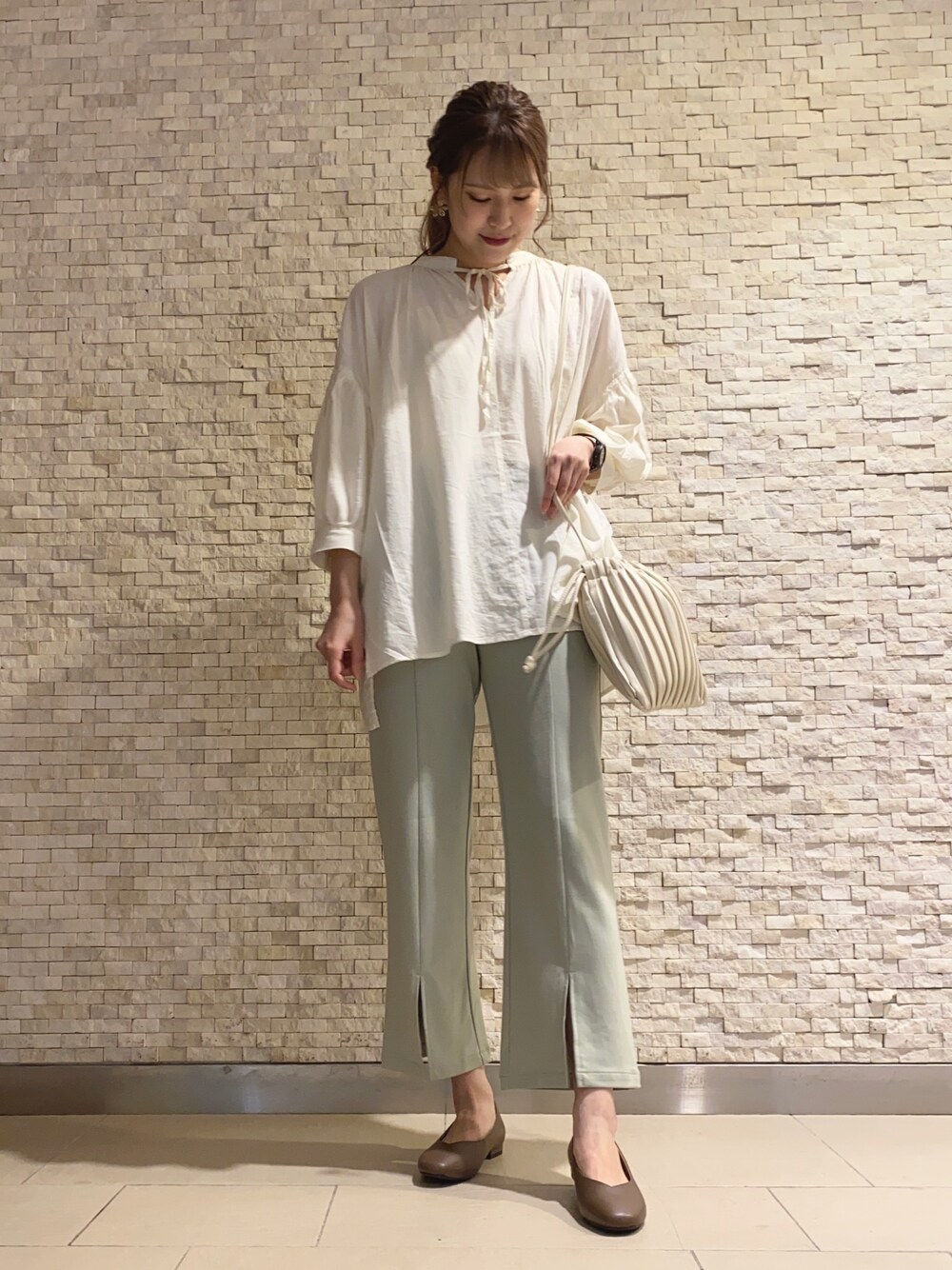 お久しぶりです¨̮⑅ 正面にスリットが入っているので 高身長さんも丈感気にせず綺麗に履けちゃうパンツ。 お気に入りで沢山履いてます♡