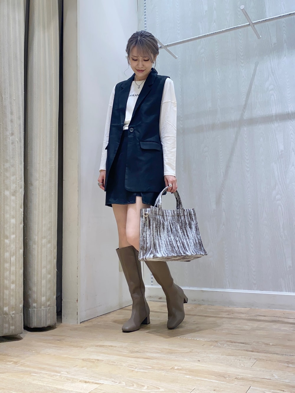 ジレとスカパンはTシャツと合わせると カジュアルに着れるのでおすすめです◎ それぞれ単体でも可愛いですが やはりセットアップで着るとテンション上がります…♡