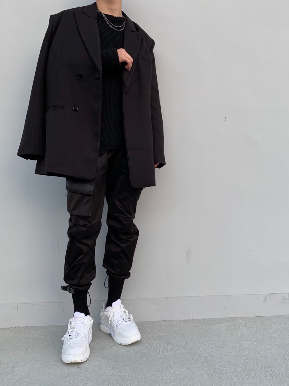 ホワイト系のスニーカーを着用したメンズの冬コーディネートの1枚目の写真