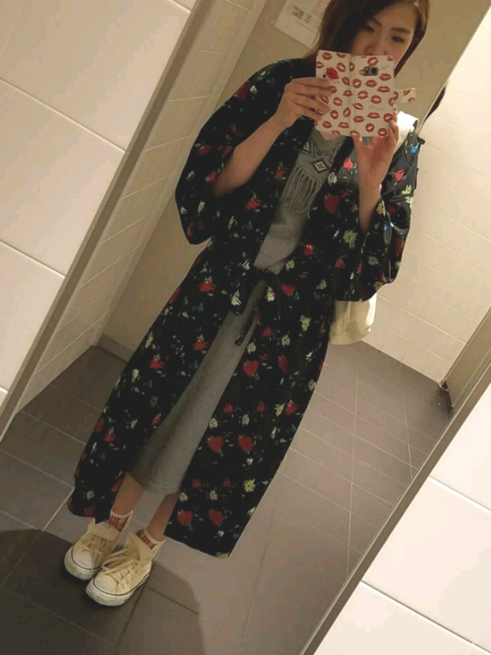 お気に入りの花柄ガウンをメインに、渋谷109のどこぞやのお店で買ったフリンジワンピの合わせ😛💕