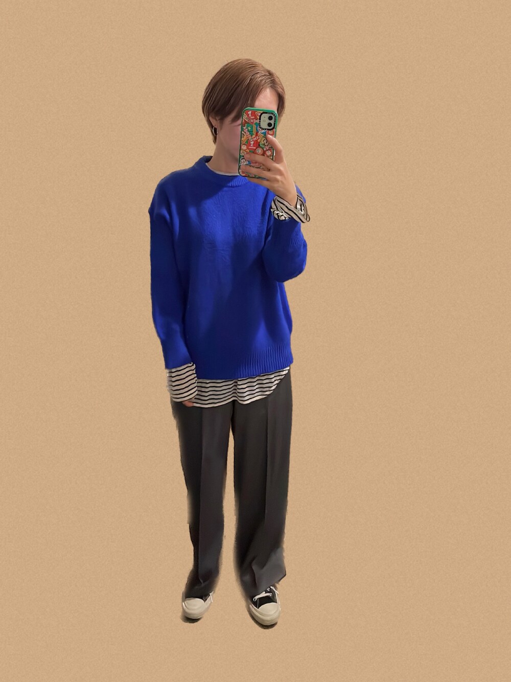 今日は寒かったので、これにアウターとマフラーでした。 やっと、ニットが着れるくらい寒くなってきた⛄️