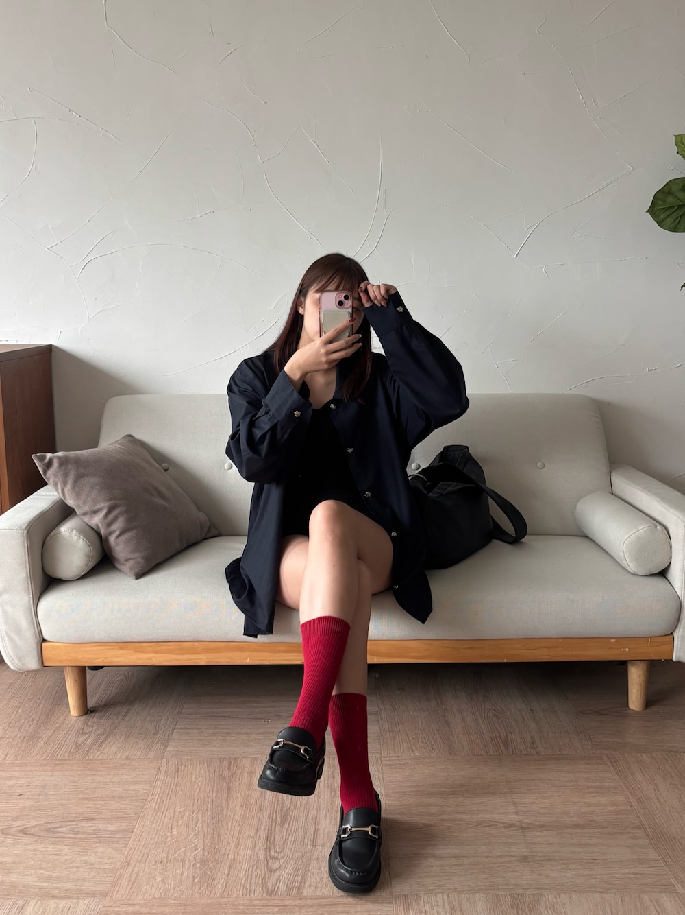 さりげなシルバーボタンがかわちこい🩶 ネイビー×レッドの組み合わせイイッ