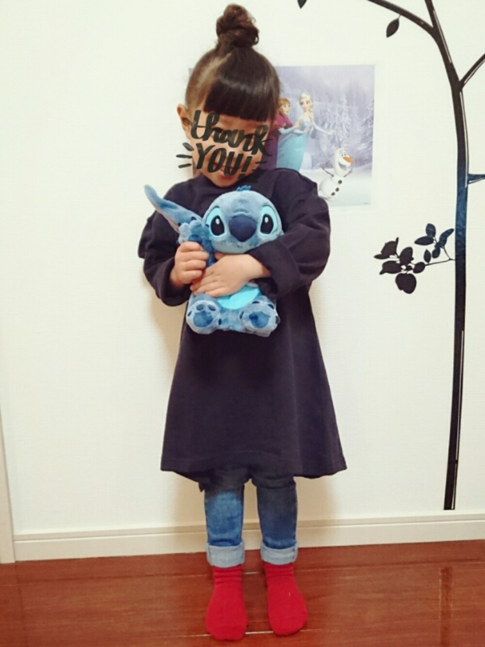 スティッチと一緒に☆ coenのワンピ、110にしたらでかすぎて丈が長かったぁ😞💦