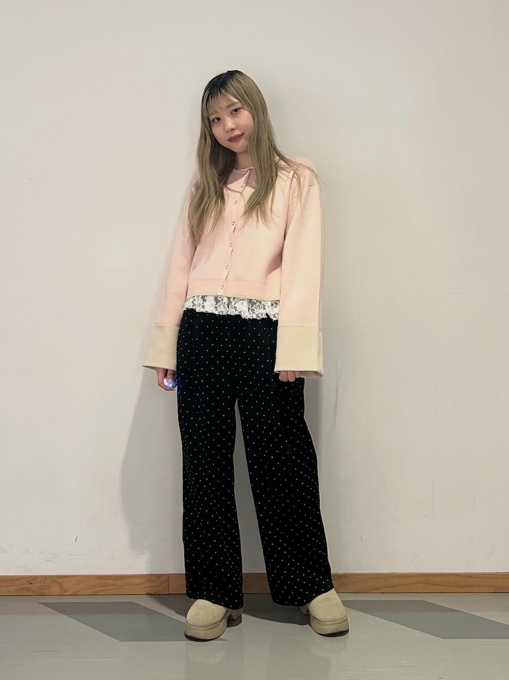 さちのスラックス「ドットワイドイージーパンツ」を使ったコーディネート