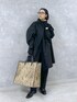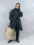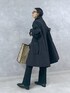 リサイクルタスランコートを少し形を変えた着方に。 この素材だから出来る、フードをコンパクトにしまい込むスタイルです。 ポイントはフードのドロストコードを引っ張って凝縮させて、その後に内側に織り込むことです。 1番上と2番目のボタンを留めるとスタンドカラーになるので、羽織るだけとは随分と表情が変わります。詳しくはInstagramのリールに。 InstagramでHOWTO動画出しているので、是非ご覧下さいね。 スタイリングを一色で纏めて、バッグを主役にしたコーディネートです。 アクセは付け過ぎないで、ゴールドで統一感を。