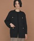 ON/OFF両用の万能ジャケットは、リバイバルアイテム。 デニムで合わせて、カジュアルミックスに。 アウターはこちらもアレンジで色々と表情の変えられるリバーショールコートを。 IACUCCIのバッグは、小さいながらにも大容量でとっても使い勝手のよいBAGです。
