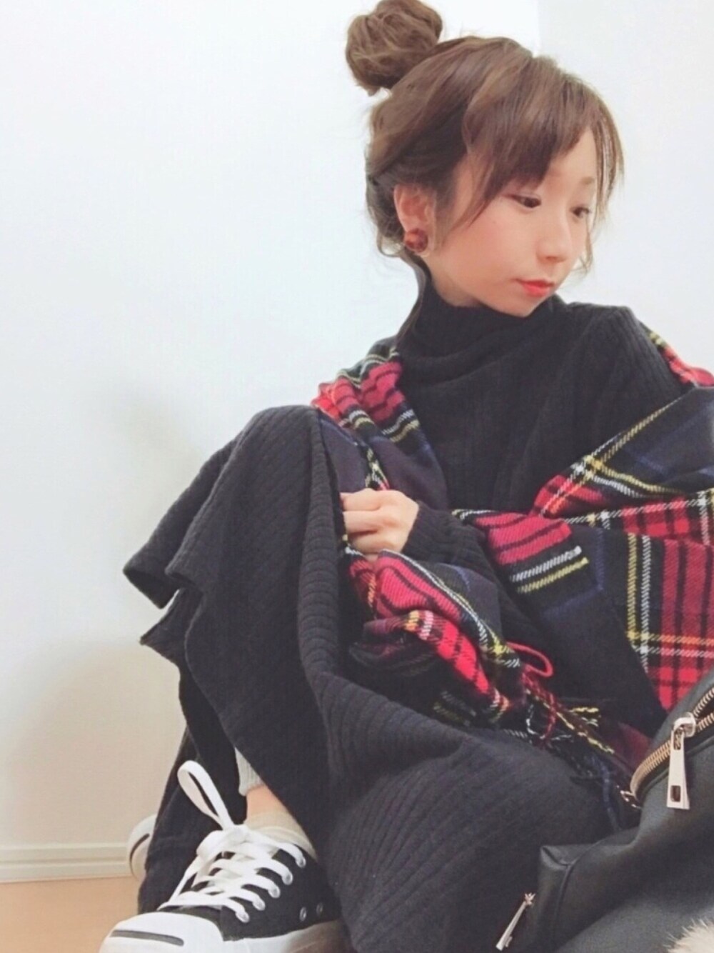 ニットワンピにリブレギンス。 さらりと着やすくて可愛い♡ ニットワンピは古着です☆ モノトーンに チェックストール足すだけで 一気に明るくなるし気分も上がる♡ そして寒さ対策にもなりますね♩ 大判ストール色々と柄も カラバリも豊富で集めたくなる〜 前回とコーデは同じだけど ヘアアレンジだけ変えて。 前のと比べたら見た目 年齢変わるかな?←