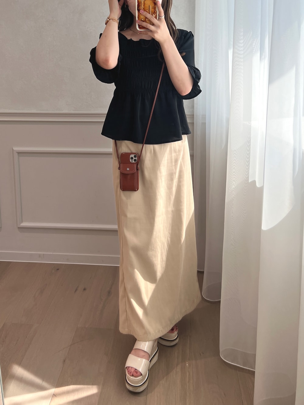 ペプラムブラウスはパンツも合うけど ナロースカート合わせも女性らしく 着れるので好きです❤︎