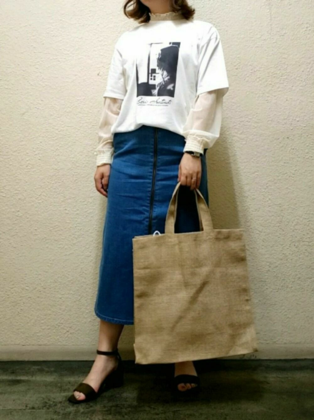 ちぴろのTシャツ/カットソー「アパルトマンフォトプリントTシャツ」を使ったコーディネート