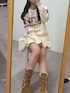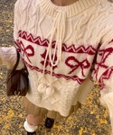 冬といえばなカウチンニット オフにレッドの柄が目を引いてかわいい! しかもリボンとかあってトキメキアイテム ぽんぽん付きなのも冬らしくて◎ おしりにかかるくらいの丈感で ニットの着心地も◎ 冬のデートやクリスマスなどに おすすめなニットトップスです!