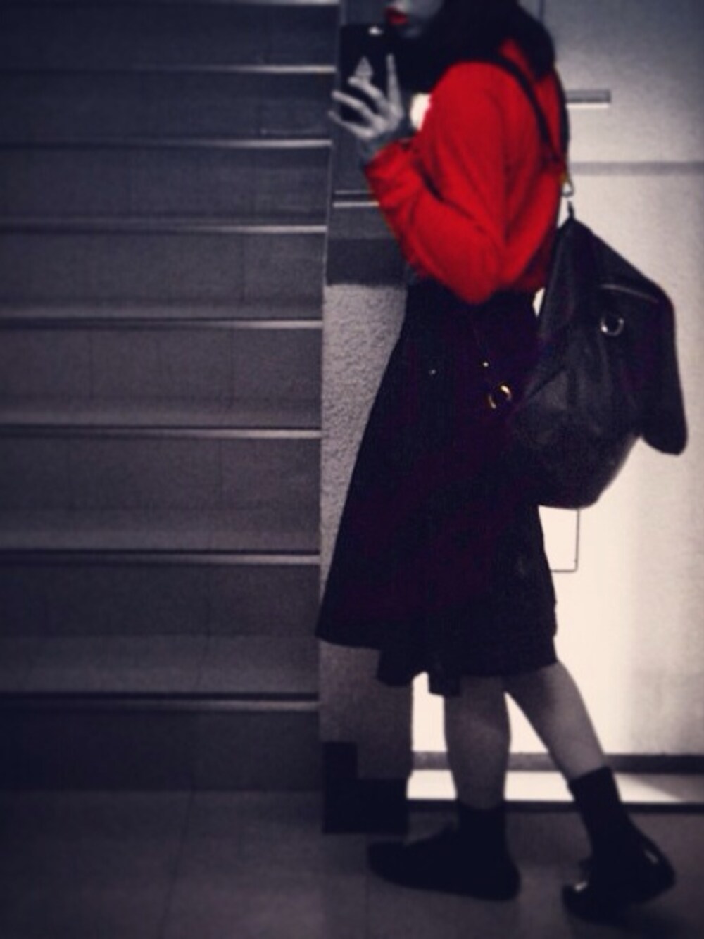 黒と赤コーデ 赤はとっても華やかな色。 顔も明るくなるけれど、 少し女のかっこよさも魅せられる。 黒と赤のコンビ。 とっても好き。