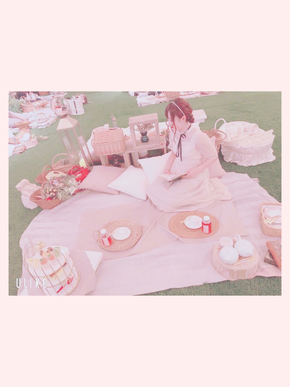 この前大阪にフルーツピクニックに行った時のお写真♡店内全てがかわいくて🥺💖 外は大雨中は快晴でした(*´ω`*)✨ ヘアセットもしてもらって最近ハマっているパールカチューシャもつけてるんるんです🎶