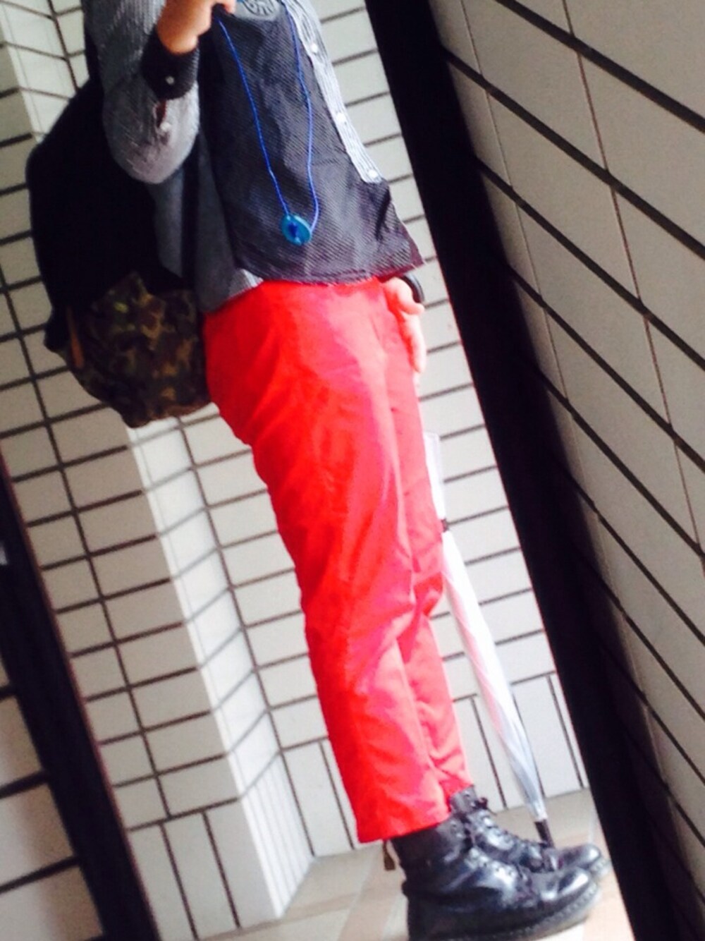 お気に入りのシャツと赤パン! そして、マーチン♡♡ なんとなくロックテイストにしてみました♪ 今日仕事頑張ればやっと休みやー!!