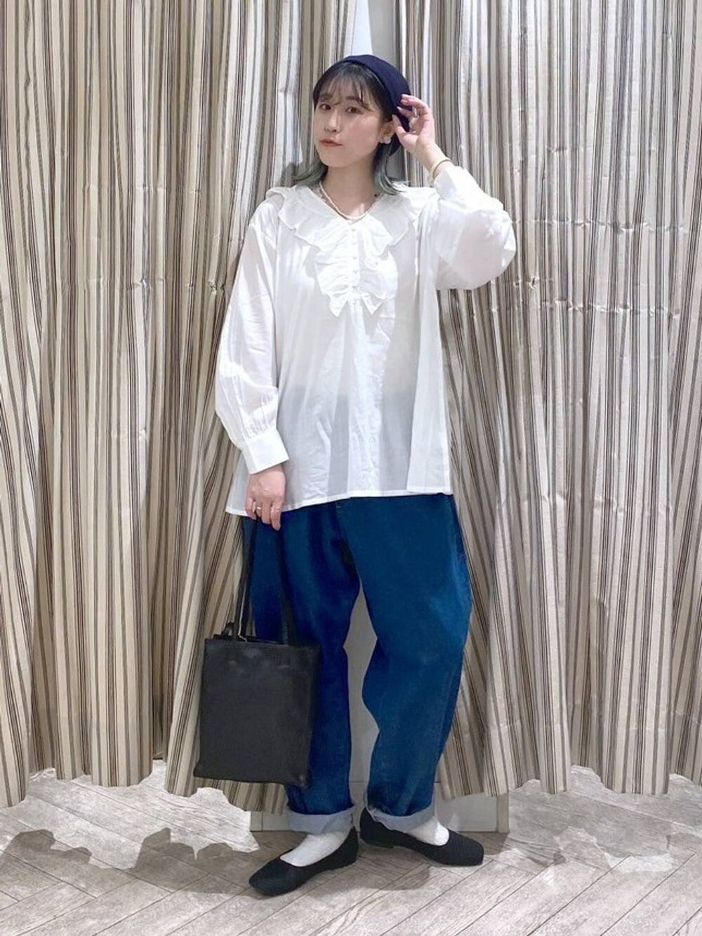 𓂃𓂃 〚トップス〛お買い得価格になりました! フリルデザインが特徴のブラウス! 綿レーヨン素材で落ち感が綺麗です。 フロント部分はVネックですっきり 肩はドロップショルダーでリラックス感があります。 甘めが苦手な方でも挑戦しやすいフリルデザインです! 〚ボトムス〛お買い得価格になりました! ウエストが絞れてサイズフリーのデニムパンツ! ヒップ周りはゆとりがあってらくちん♫ 裾にかけてスッキリしているので カジュアルになりすぎず きれいめアイテムと合わせても🙆 気になったアイテムは 下記の【使用アイテム】から購入できます☻♡ 𓂃𓂃𓂃𓂃𓂃𓂃
