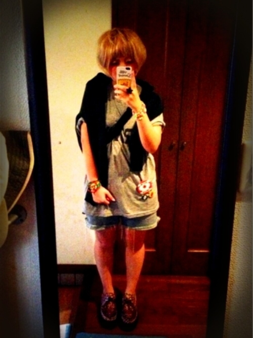 よるにでかけるどきどき ビックTシャツ 短髪 Arnold Palmerのカーディガンはおって ヒョウ柄ラバーソール 夜におでかけ これからおでかけ 美容院!!! 髪ばっさりいってきます!
