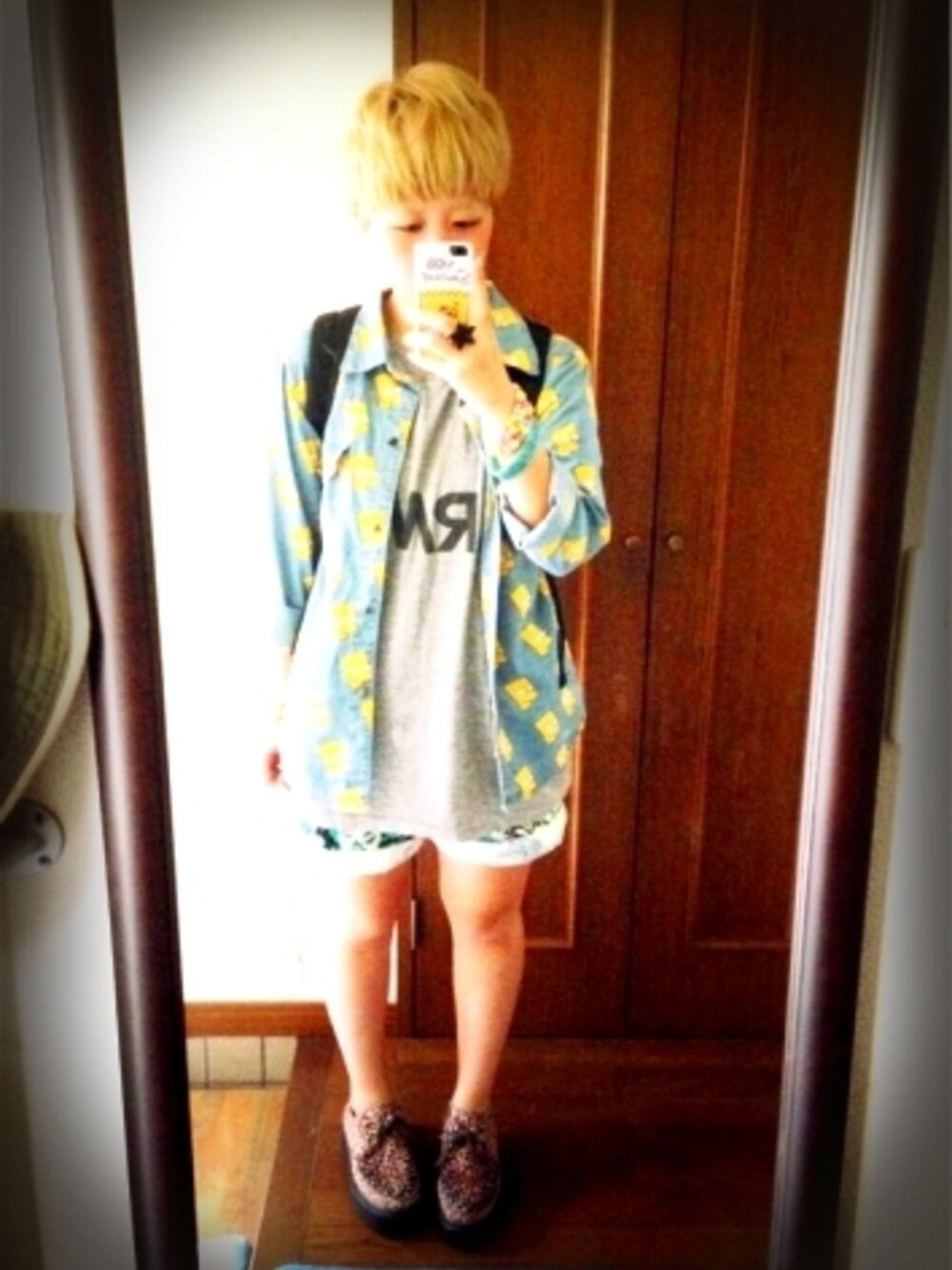 すてきながらくたたち ARMYビックTシャツ シンプソン総柄シャツ 男物海パン ヒョウ柄ラバーソール 海パンは昨日、古着屋さんで購入 巻きすぎて柄見えなかった笑 緑ベースの海パンです。 海はあんまりだけどはやく夏になれーい! 今週の天気予報はグレーばかりで、 それだけでテンソンもってかれるるる。