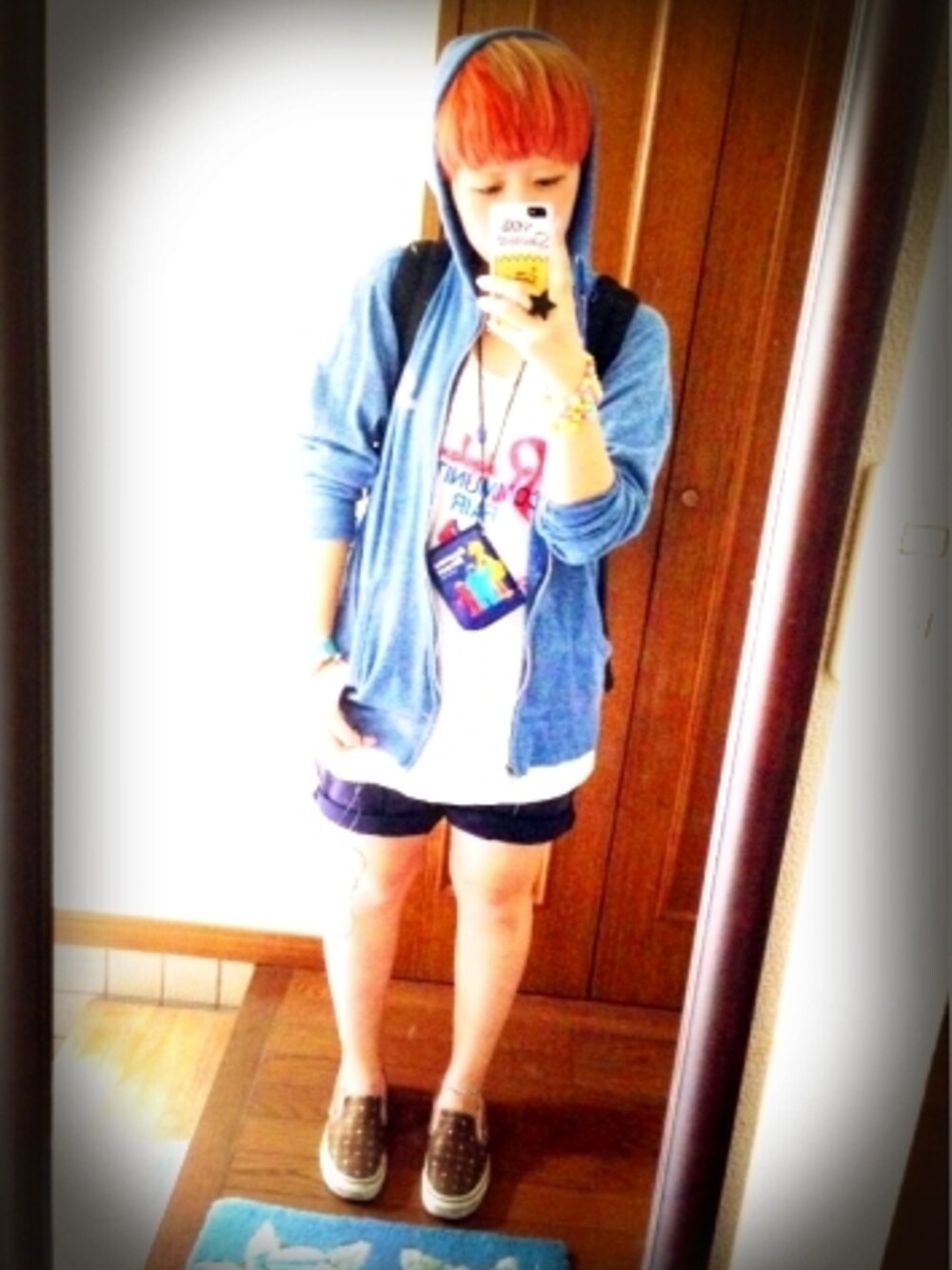 体操着を着てみた。 古着タンクトップに サンキューマート購入パーカーに 高校の時の体操着短パン VANSスリッポン 今日は友達の家に泊まって、 明日はボーリング大会!!! 短パンは明日もこのままのつもりだから、 体操着にした! うぃ! ボーリング久々だー!