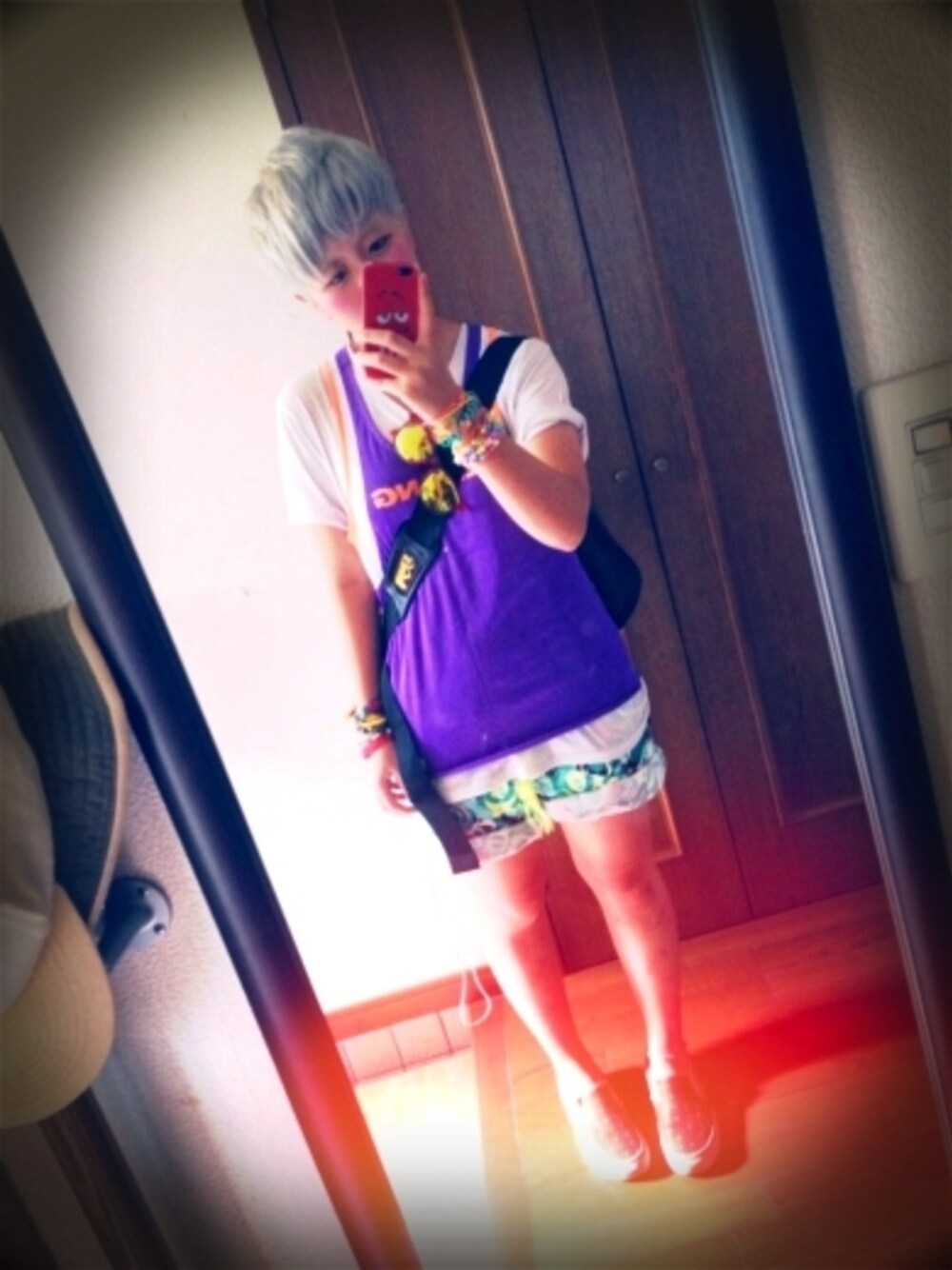 バスケッター!!! なんかお腹出て見える…笑 WEGOのクリーム色したTシャツに、 ビブス 海パン VANSスリッポン あ、そういえば、銀髪になりました。