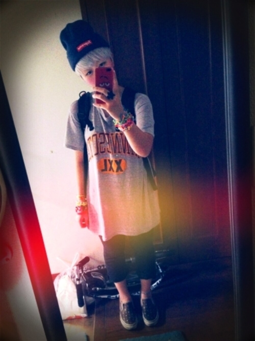 Supreme × Supreme Supremeのニット帽に、 古着Tシャツ GUの黒スキニーをロールアップして、 VANSのスリッポン リュックはおにゅーのSupreme! ふゅー! スケーターブランドはまったー うえーい、 そんで、キックボード。 スケボー乗れたらかっこいいんだけどねー なんでかねー 乗れないからねー キックボードなんですのよ。 はい、 今日も吉祥寺 住みたい。