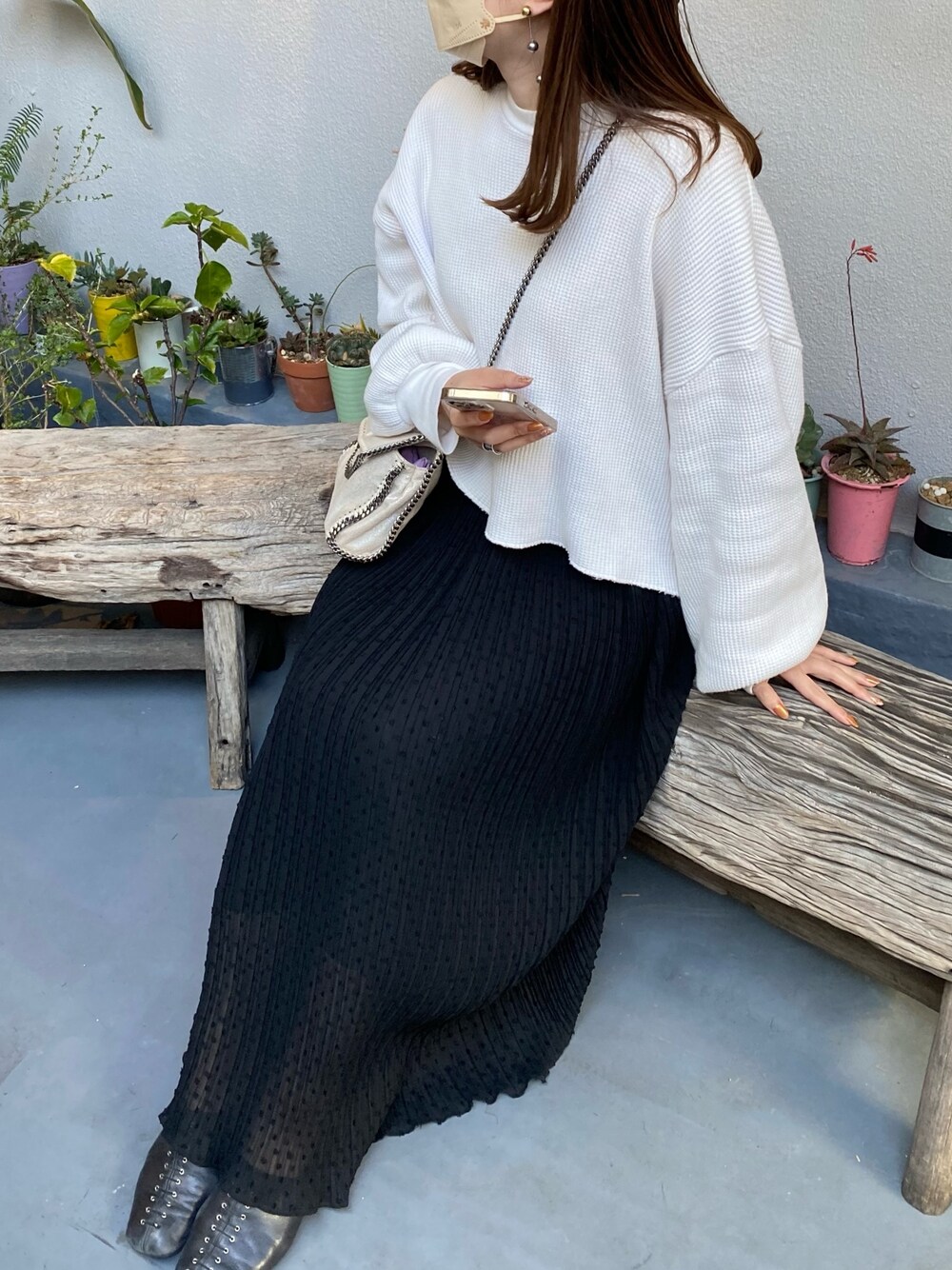 chisaのスカート「【CLANE(クラネ)】ドットジャガードプリーツスカート」を使ったコーディネート