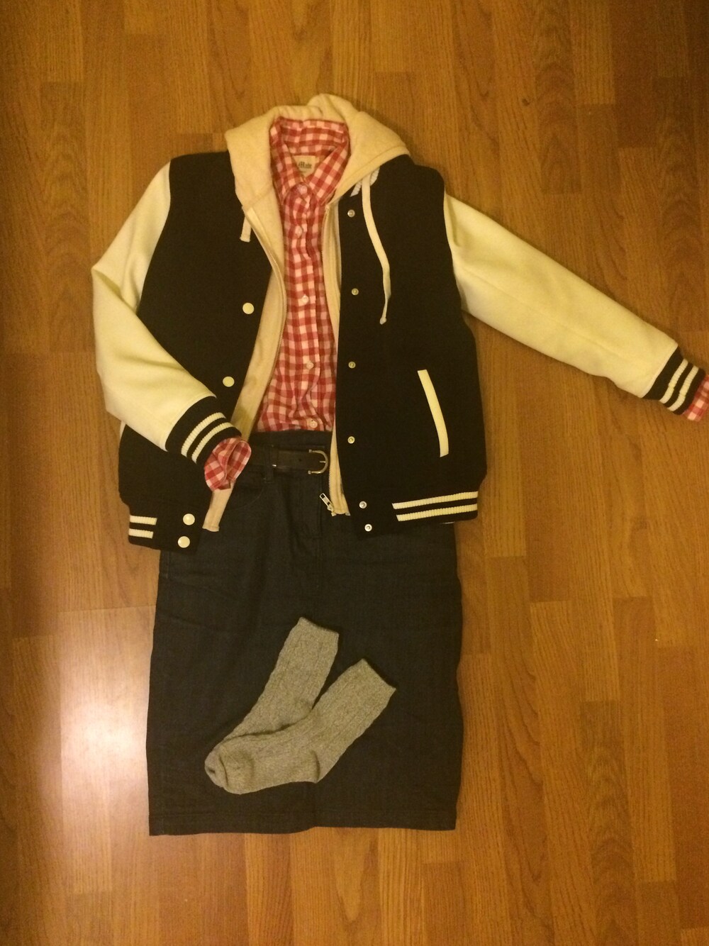 スカート niko and... シャツ、靴下 不明 パーカーの紐の長さがだいぶ違うのはご愛嬌ということで♡ ♡