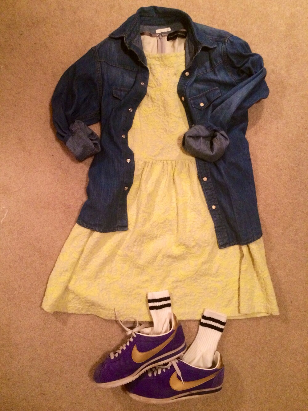ワンピース green label relaxing シャツ g.u. 女の子ってワンピースにデニムシャツとかスニーカーで崩すの好き\(ϋ)/ レモンイエロー!春だー! でもこちら、最低気温一桁です(泣) ♡