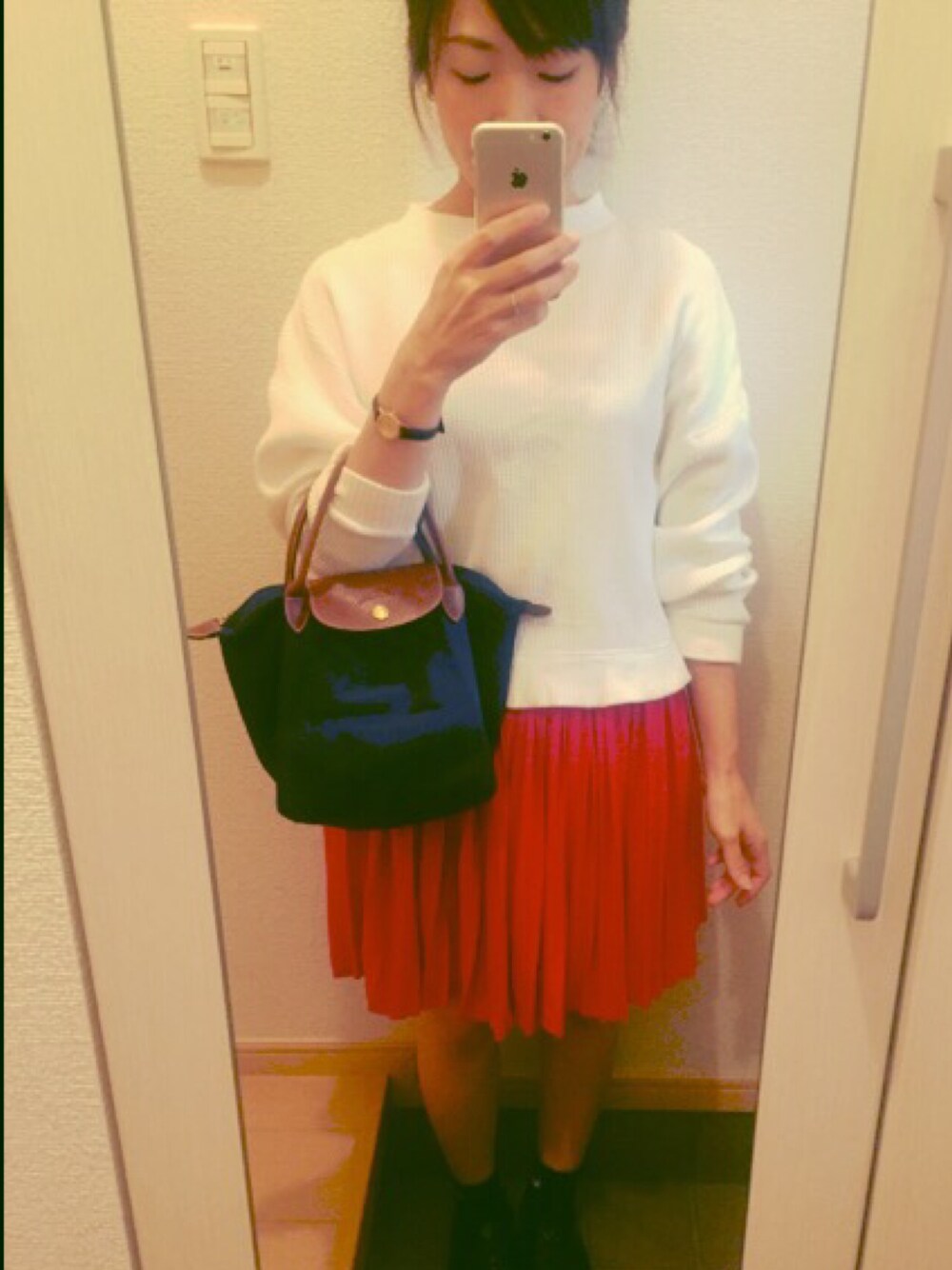 朝は肌寒かったので薄手のニットを着て 長い事履いてなかった赤のプリーツスカートを合わせてみました✨ 今日は ケーキセットやお饅頭や、たこ焼きやら..結構食べたけど、もうお腹が空いてる〜 自分が恐ろしい笑🙈 夜もしっかり食べます💕