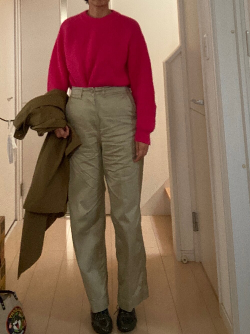 着丈が長くて、セーターをインしてみました。 格好悪いけど、出したらもっと格好悪いのです。