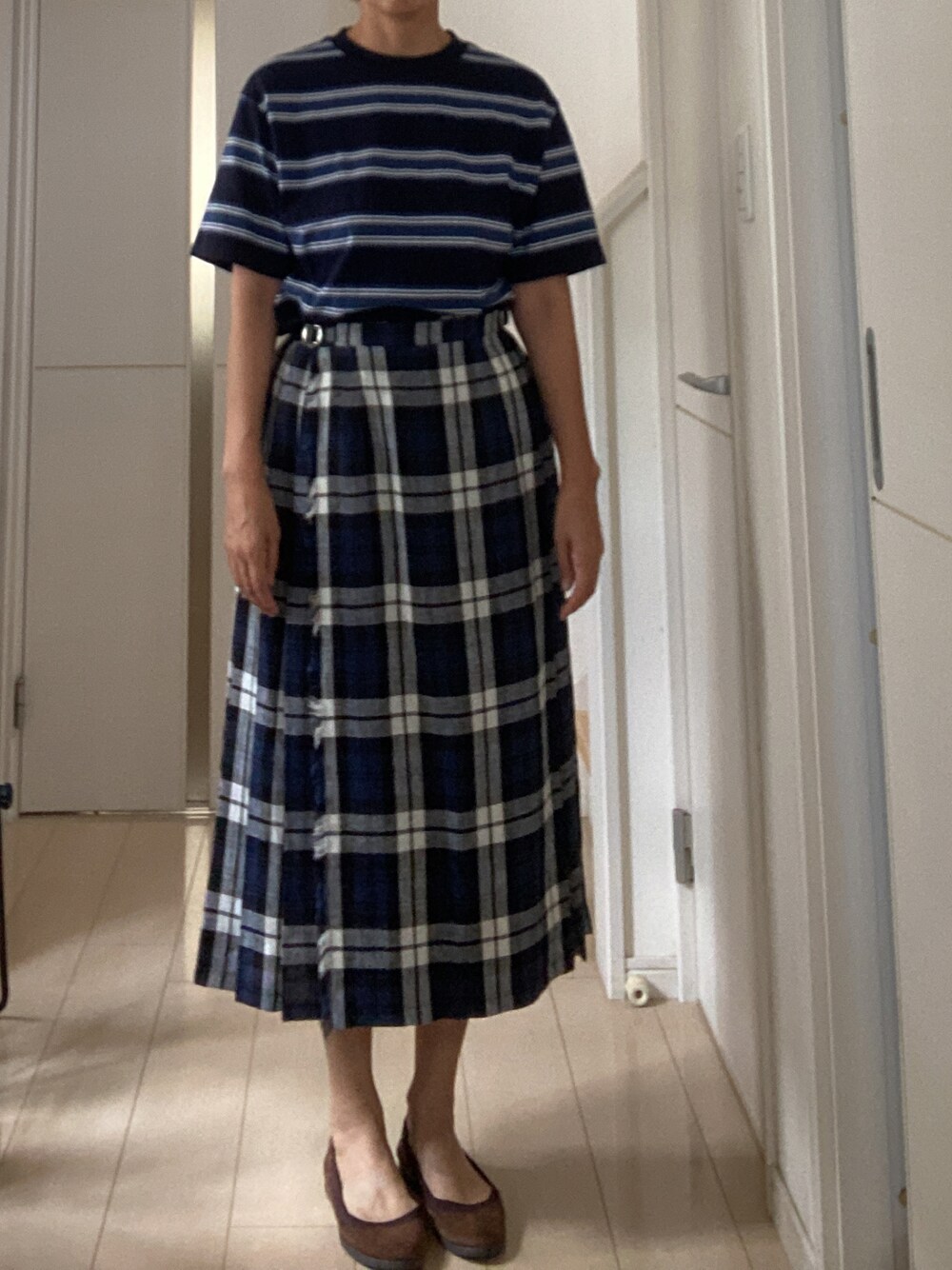 着替えるのが面倒で、ボーダー×チェックで、出かけてしまいました。