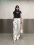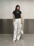 【tops】ブラックその他2 | size:F 胸元のリボンが可愛いトップスです♡さりげない肌見せで抜け感を出して着用いただけます! シャーリングの素材なので、柔らかく着心地抜群です!また、体全体の肉感を拾いにくく、女性らしいシルエットで着用いただけます!✨ 丈感は程よい短丈なので、お腹周りも安心して着用いただけます! 【bottom】155cm | エクリュ | size:S 155cmでSサイズを着用しております!ヒールがある靴と合わせていただくと床に裾がつかないくらいで合わせることができました。 リボンのデザインが可愛いスウェットパンツです♡ 生地感が薄めで柔らかく、サラッとしているため夏でも涼しく着用していただけます! デザイン性あるため、ラフになりすぎないのでどんなお洋服でも合わせていただきやすいです✨ 【shoes】23.5〜24.0cm | size:M 普段23.5〜24.0でMサイズがピッタリでした! リボンのデザインがポイントになるサンダルです🎀 高すぎないヒールなので1日履いていても疲れにくかったです✨ 足首のストラップは調節ができるため、足幅に合わせて着用いただけます✨ 〈スタッフ情報〉 身長: 155cm 骨格: 骨格ストレート パーソナルカラー: 1st ブルベ夏(ライトサマー) 2nd イエベ春(ライトスプリング) 顔タイプ: アクティブキュート 〈普段着用サイズ〉 トップス: S〜M ボトムス: S〜M 靴、サンダル: 23.5㎝ S〜Mサイズ