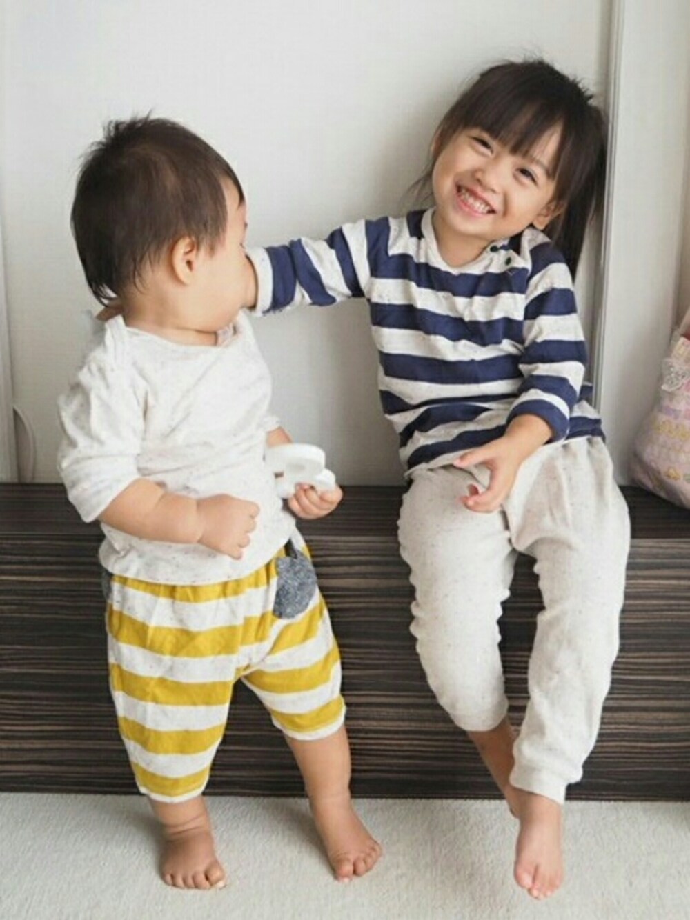 姉弟 ボーダーリンクコーデ