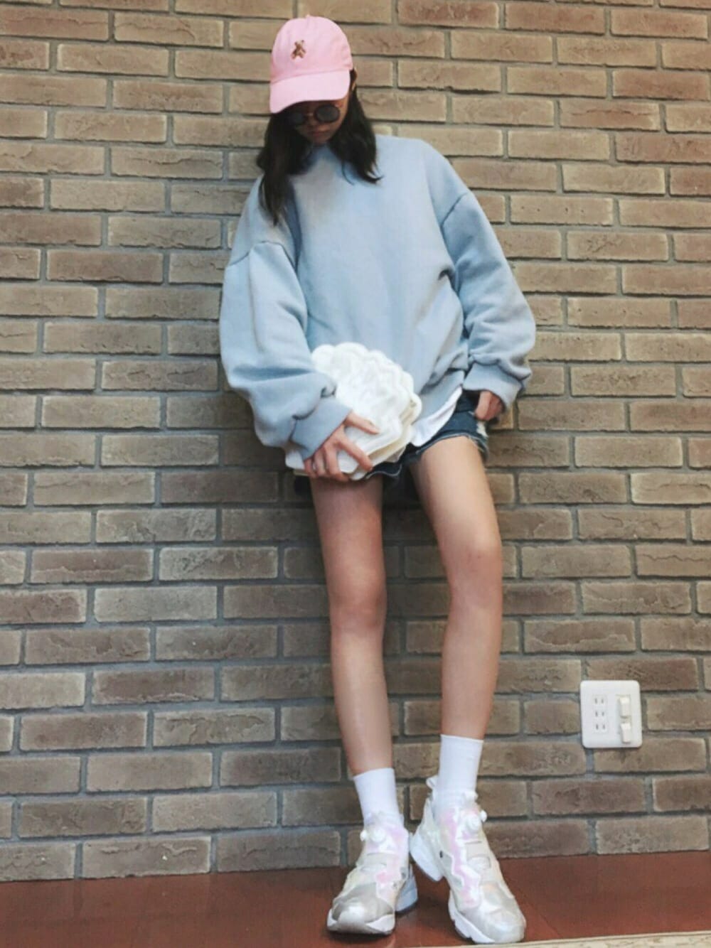韓国ファッション☺︎ 春カラーでいつもよりは女の子になりました。 今お気に入りの色はアイスブルーです。 このスウェットもアイスブルー♩ 春っぽくて繊細な雰囲気☺︎