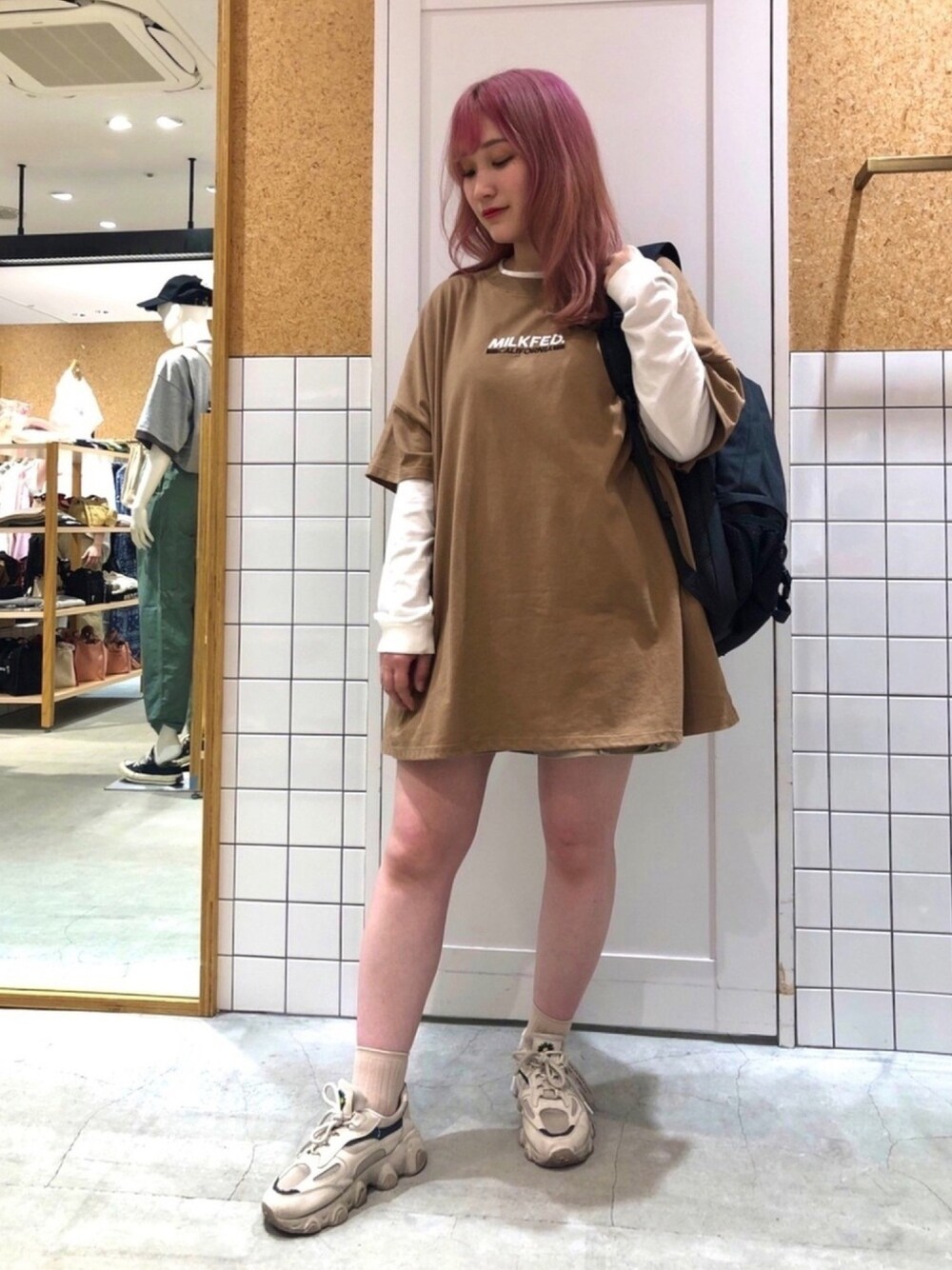 岩瀬 花乃理(MILKFED.ラフォーレ(ラフォーレ原宿))のTシャツ/カットソー「DYNAMIC LOGO BIG TOP」を使ったコーディネート