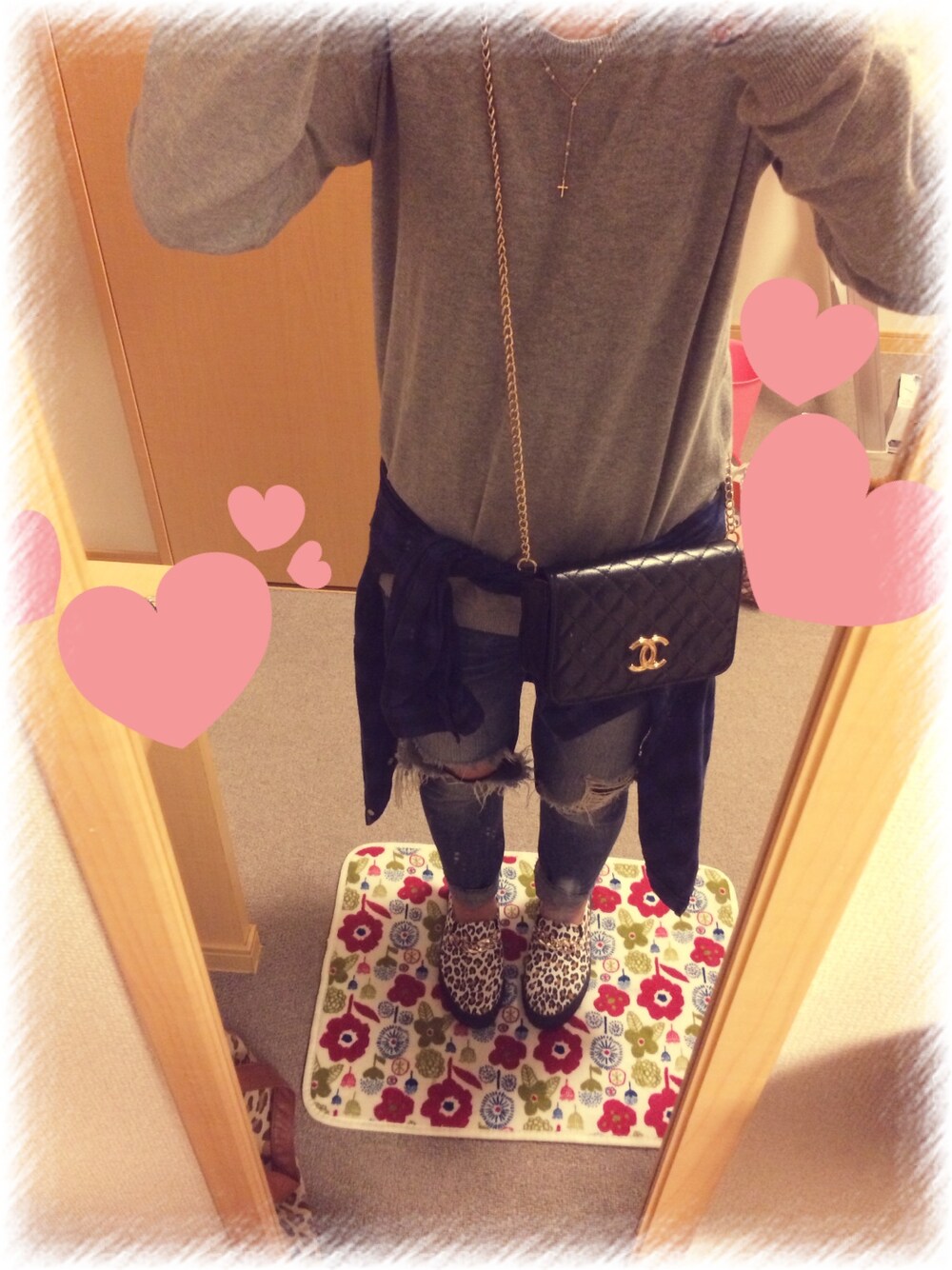 tops:H&M denim:ungrid bag:CHANELパロディ shoes:???
