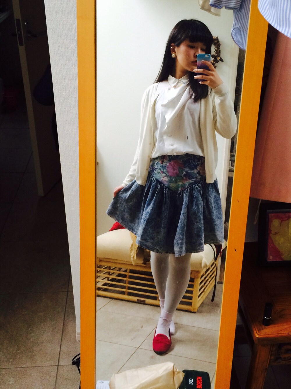 コックさんシャツは鎌倉のお店で買ったもの!スカートはニューヨーク