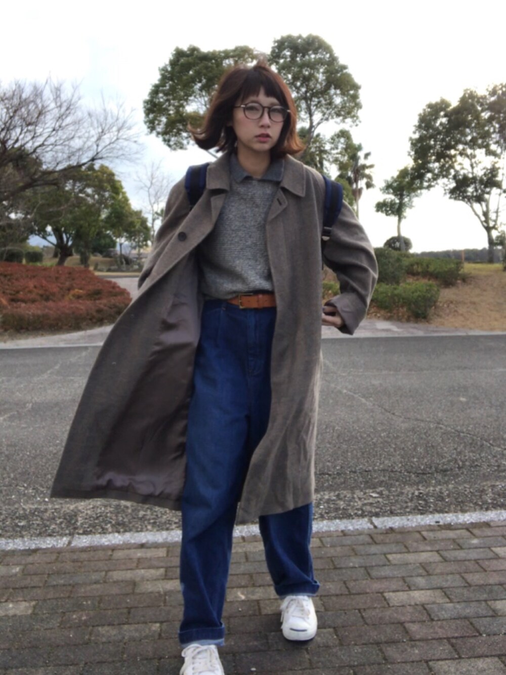 古着のアウターはmen'sでだいぶオーバーサイズ。