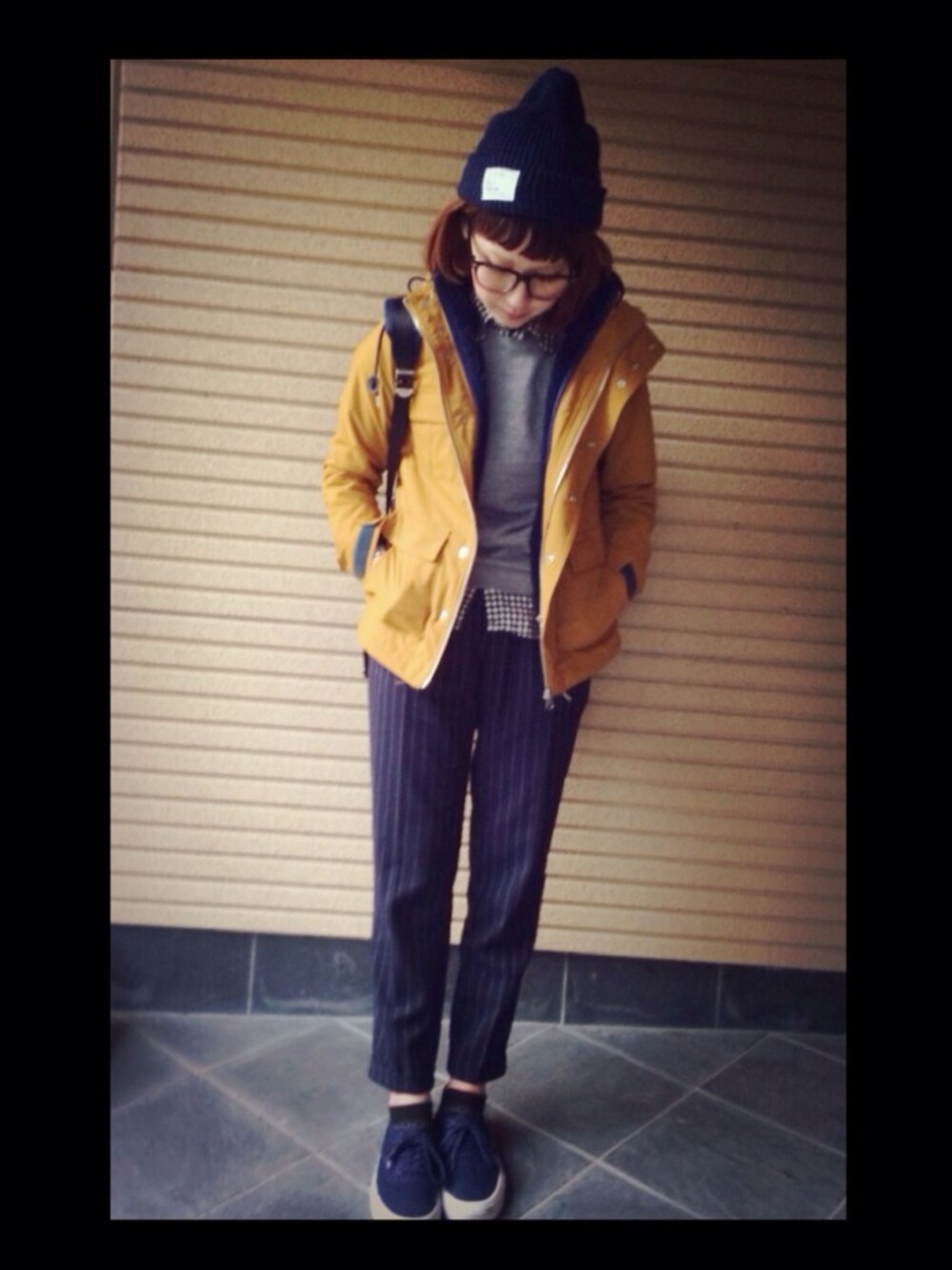 シャツ#UNIQLO ニット#UNIQLO パンツ#ハニーズ アウター#Xgirl 靴#VANS バックパック#ciaopanic