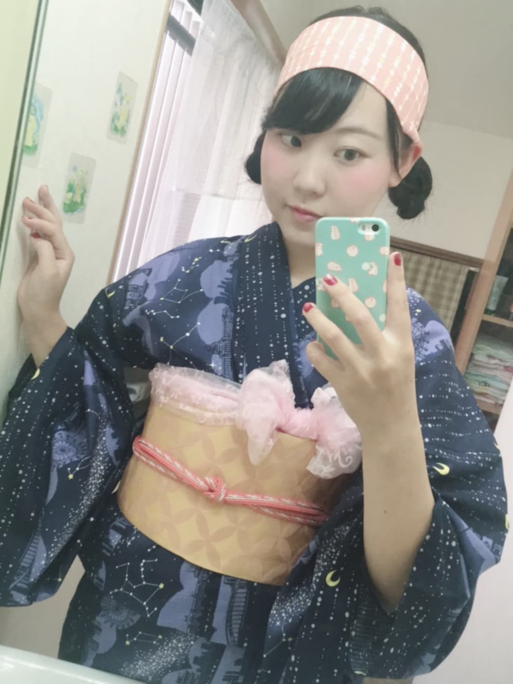 1週間くらい前の、 浴衣でビアガーデンコーデ🍻 浴衣がセーラームーンっぽかったから、色味をセーラームーンにしてみた🌙*.。