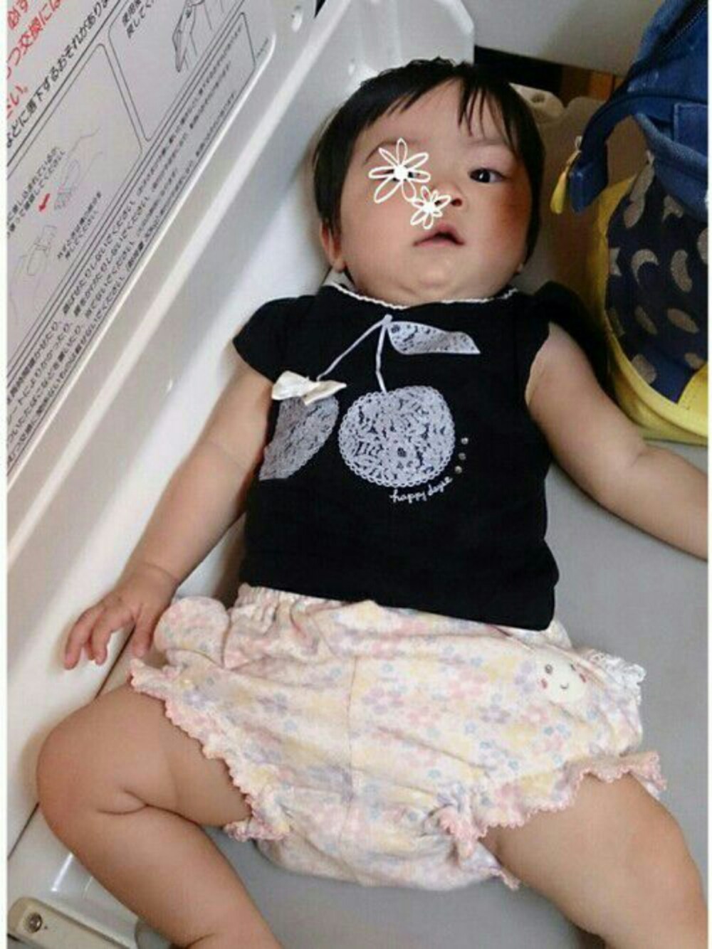 連投失礼します。 トップスはお姉さんっぽく、ボトムスは甘く、です🍒 多目的トイレのオムツ台の写真ですみませぬ。 今日は職場の方々とランチ。退職された方、育休中の方、育休復帰している方、大人6人、子供6人(º ロ º )昔ながらの造りではなれに通してもらえ、座敷だしおもちゃは自由に使えるしで、子連れにはありがたい場所でした。chiuもいつもは人見知りなのに、赤ちゃんがいっぱいだからか動きやすい部屋だからかテンション↑ コップをひっくり返してみたりやらかしてましたf^_^; 解散して、実家へ。お泊りです。いつもより離乳食食べました。じーばーに見守られほめられると嬉しいのでしょう(´-`)