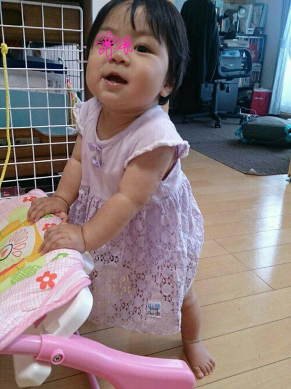 ご覧いただき、ありがとうございます🎵 以前に載せたワンピース。サイズ70なのでぴったり。 6ヶ月のときの写真と比べると3ヶ月の差ってあるのね★ 立つようになったから、ワンピースのひらひらが目立って更にかわいくなった(○´艸`)