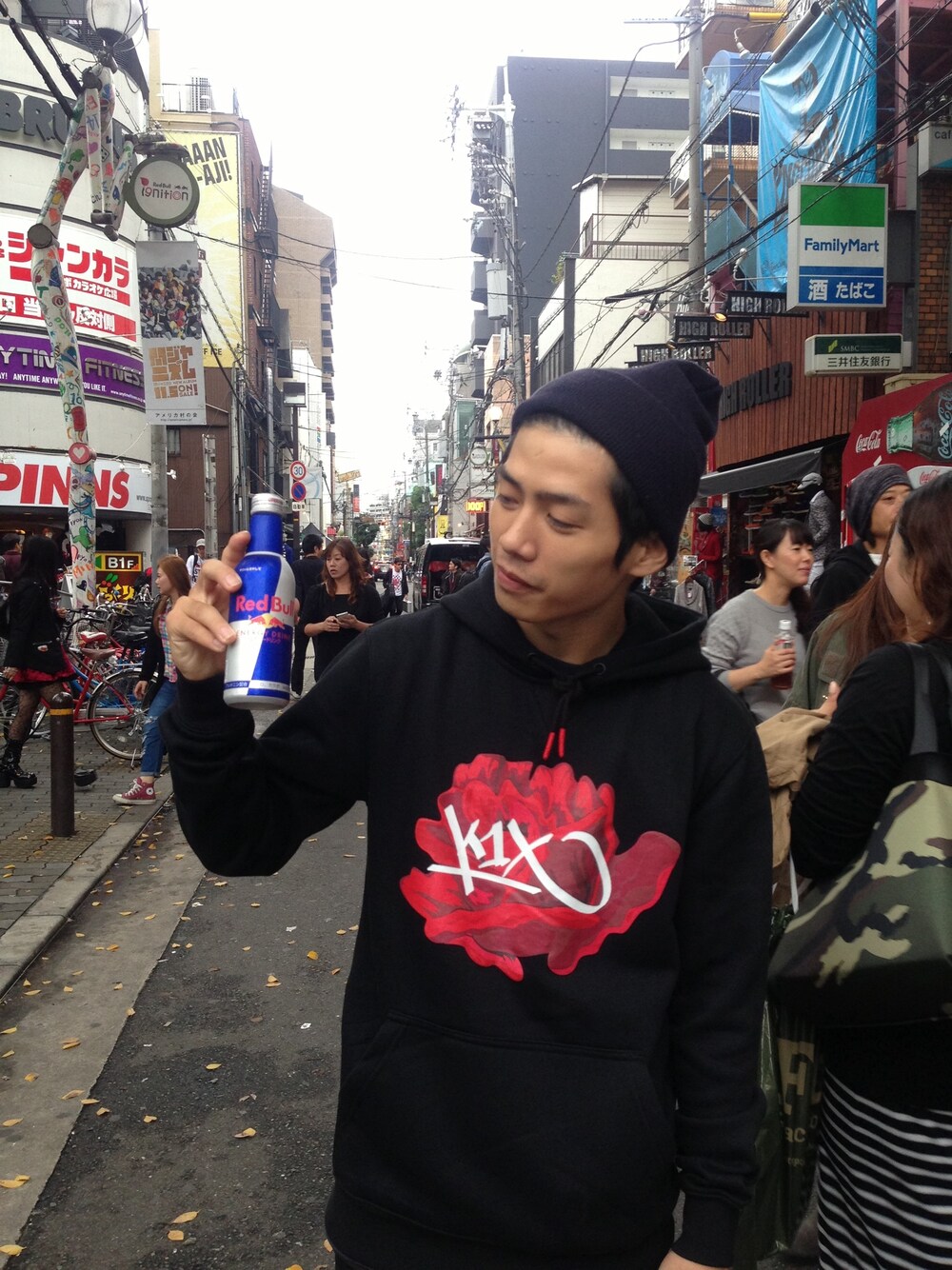 大阪天氣,帽T穿著最合適了! 在美國村裡,再來瓶RedBull,補充元氣!
