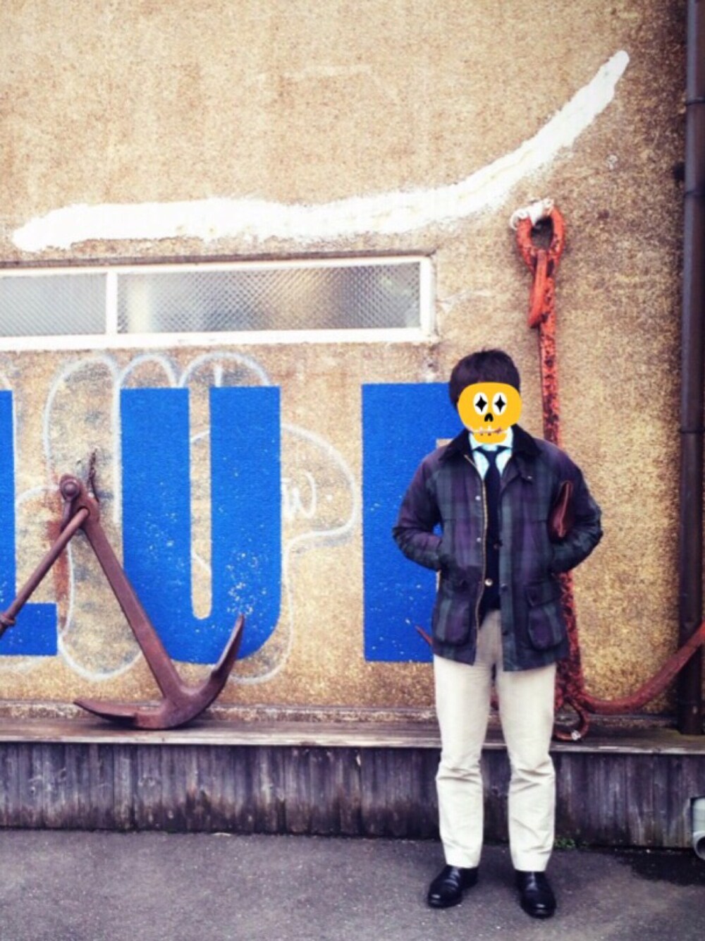 過去の画像から引っ張り出します。 横浜に友人の結婚式の二次会参加したときです。 バブアーはドレスにもカジュアルに合うので1着あると便利です。