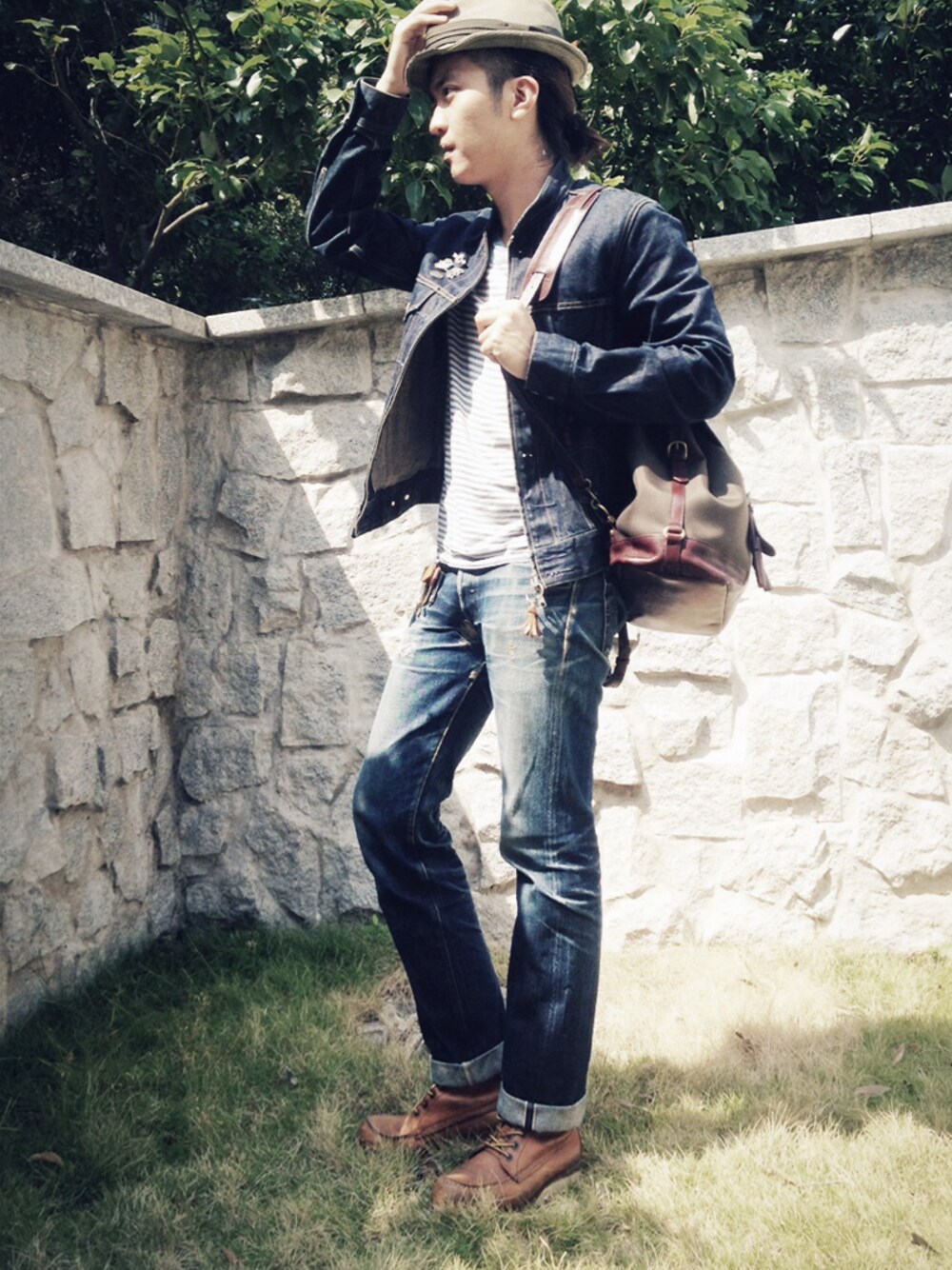 -MADE IN EDEN traveller rucksack - choco -LEFTY x LVC denim jacket -SCOTCH & SODA army tee -RED WING 877 boots -LVC 40’s 501 jeans